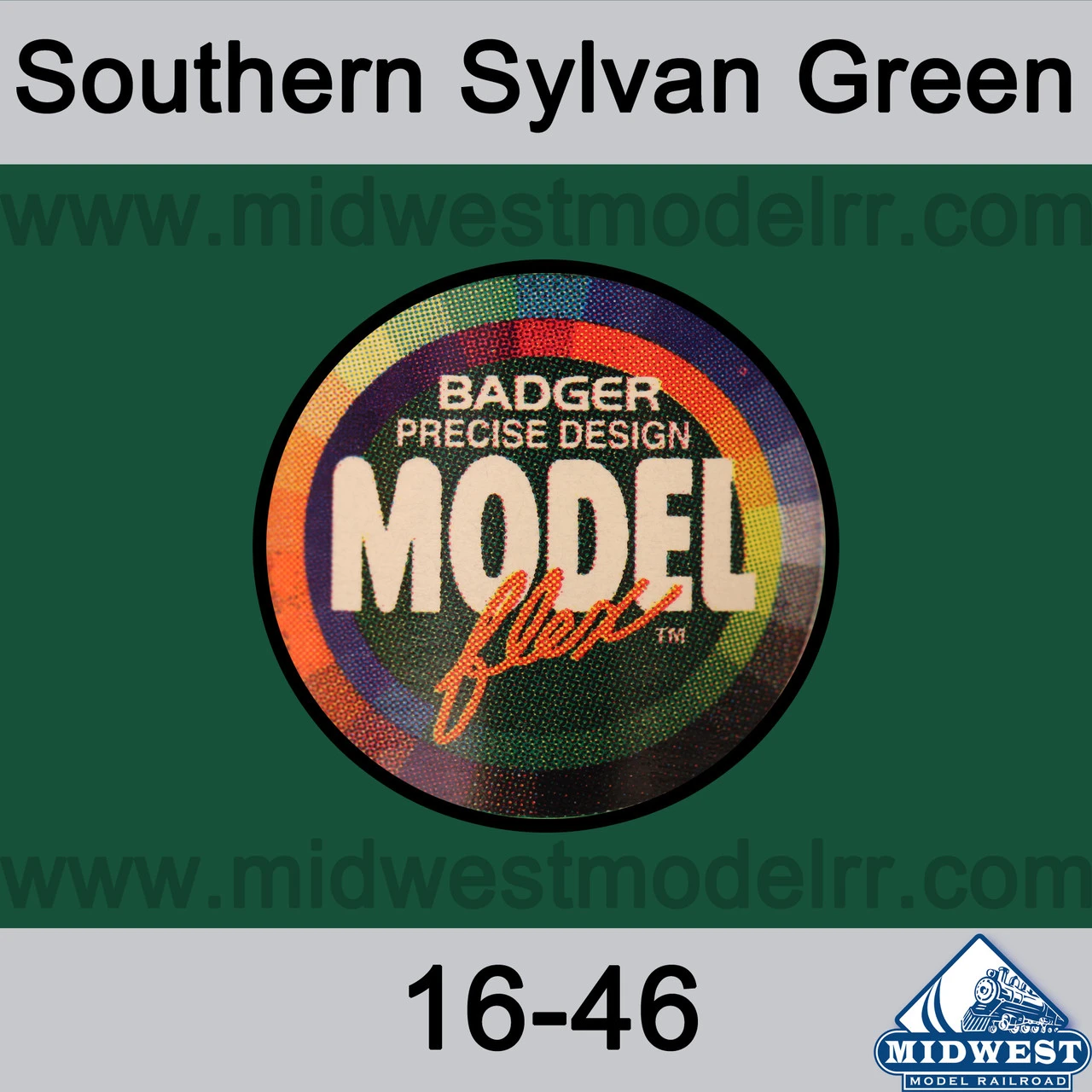 Southern Sylvan Green 16-46 MODELflex Badger PAINT FOR THE PROFESSIONAL MODELER If you’re not satisfied until every detail is perfect, then let MODELflex¨ bring your models to life. It is a superior hobby paint designed to help modelers achieve authentic, professional painting results, with greater ease and proficiency. Waterbased MODELflex¨ is easy to apply with an airbrush or paint brush and clean-up is fast and easy with MODELflex ¨ cleaner. MODELflex¨ paint dries in 12 to 15 minutes at room temperature (3 to 5 minutes if heat dried). FEATURESAvailable in 1 oz plastic bottlesMade of high quality organic pigments for superior color retention and color fastnessMODELflex offers extreme fine-coat coverage without conceling intricate detailsprimers are not required with most colors (primers are recommended with lighter colors)Superior adhesion to most plastics, resins, metals and various other substratesDecaling and detailing may begin in 15 minutes if heat driedEnvironmentally friendly, safe to use, non-flamable, non-cardinogenic
