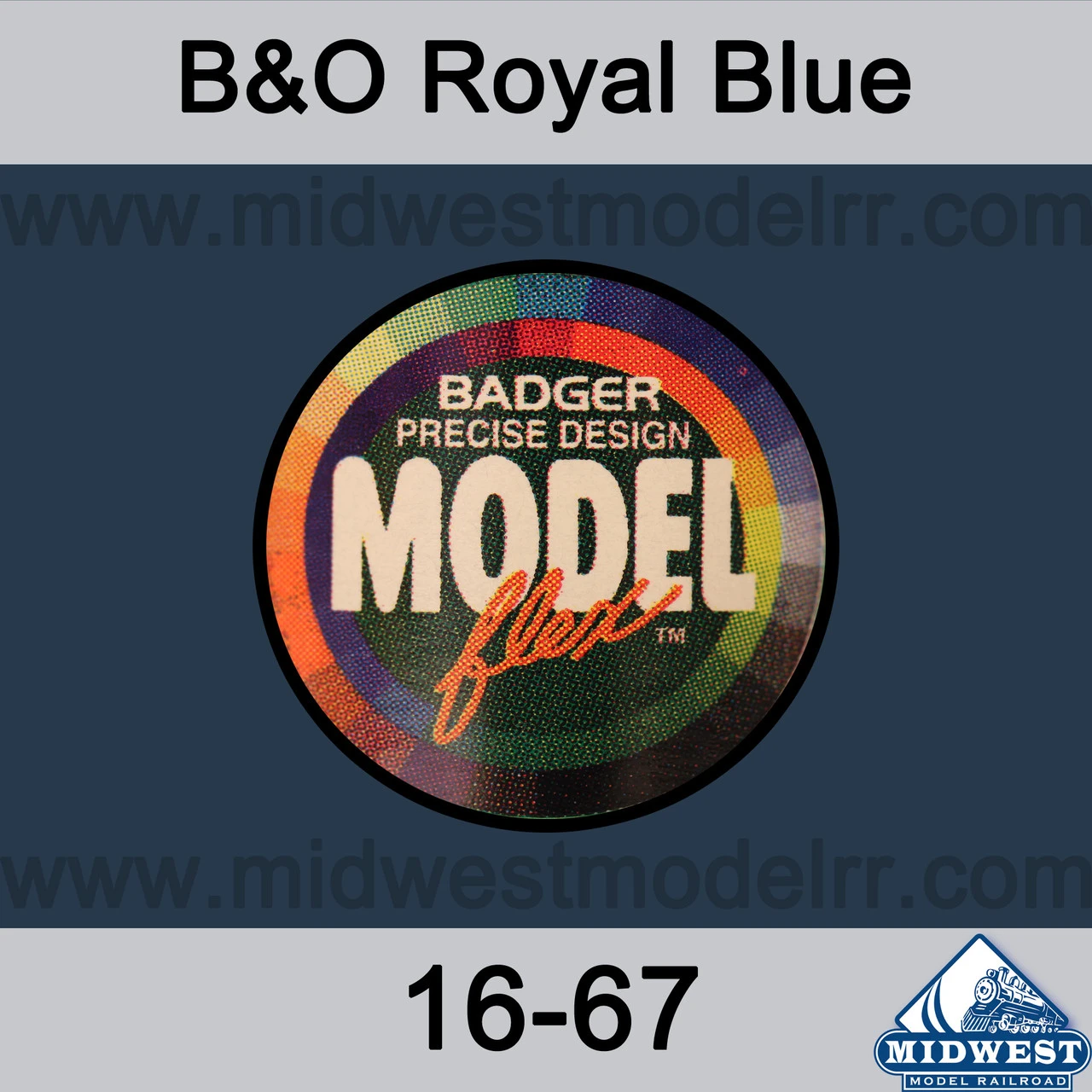 B&O Royal Blue MODELflex Badger PAINT FOR THE PROFESSIONAL MODELER If you’re not satisfied until every detail is perfect, then let MODELflex¨ bring your models to life. It is a superior hobby paint designed to help modelers achieve authentic, professional painting results, with greater ease and proficiency. Waterbased MODELflex¨ is easy to apply with an airbrush or paint brush and clean-up is fast and easy with MODELflex ¨ cleaner. MODELflex¨ paint dries in 12 to 15 minutes at room temperature (3 to 5 minutes if heat dried). FEATURESAvailable in 1 oz plastic bottlesMade of high quality organic pigments for superior color retention and color fastnessMODELflex offers extreme fine-coat coverage without conceling intricate detailsprimers are not required with most colors (primers are recommended with lighter colors)Superior adhesion to most plastics, resins, metals and various other substratesDecaling and detailing may begin in 15 minutes if heat driedEnvironmentally friendly, safe to use, non-flamable, non-cardinogenic