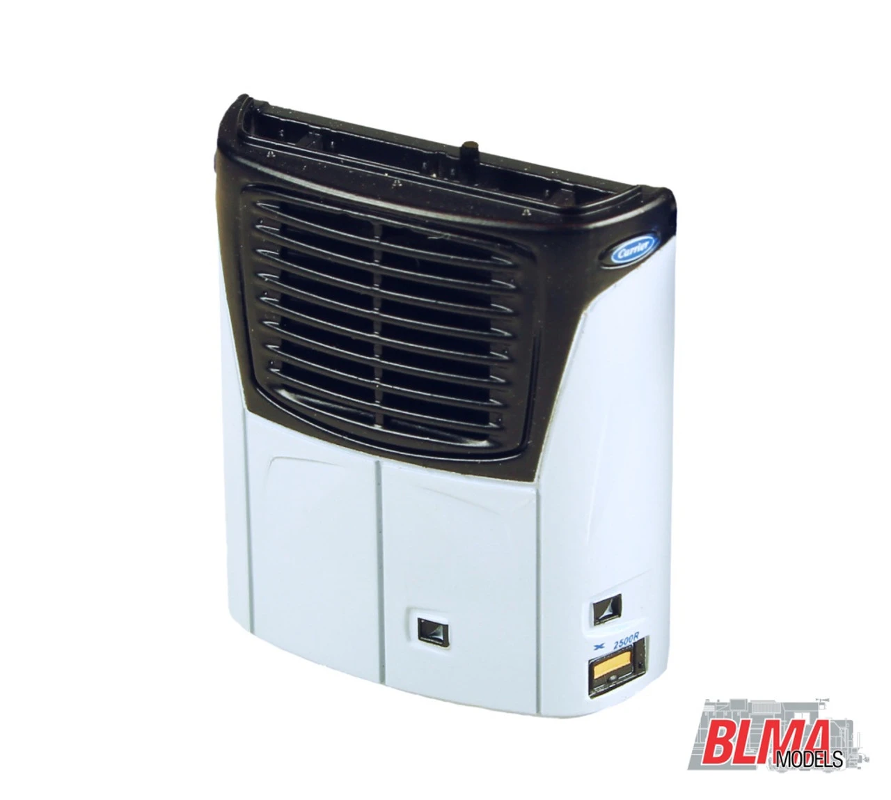 Prototype History: Turn-up the…cold!  Designed to cool truck trailers and rail cars, the X2 series refrigeration unit is manufactured by Carrier – a leader in efficient, commercial refrigeration. Compared to earlier Reefer Units, the X2 family was designed for lower lifecycle costs, durable construction, lower noise levels, exceptional capacity and a modern, aerodynamic design. Model Description: Now you can add an ultra-realistic Carrier X2 Reefer Unit to your trailers or rail cars!  Completely painted and with micro-printing, these Carrier Reefers fit on any modern trailer style.  Simply glue to your model and enjoy. Two models per pack. Model Features: •  Accurate Dimensions •  Crisp Molding •  Pre-Painted •  Ready-to-Install •  Two Per Pack