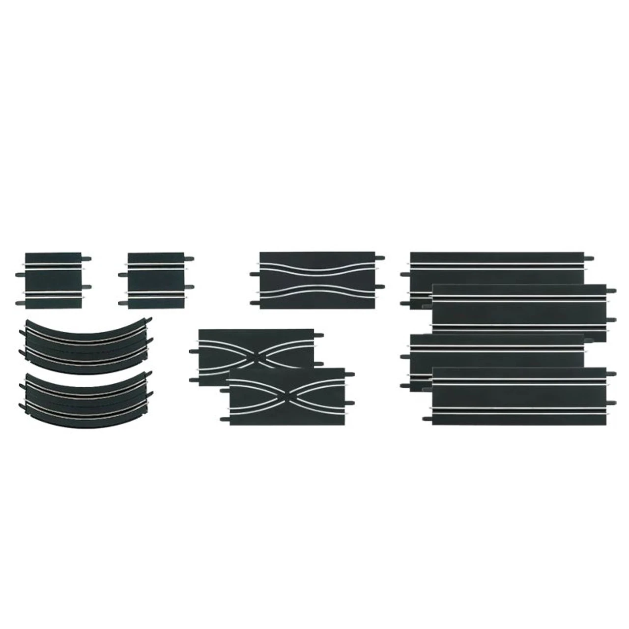 Exciting extension set for digital Carrera tracks on a scale of 1:43 DIGITAL 143 To upgrade and expand your race track Package contents: 4 straight sections at 342 mm, 2 straight sections at 114 mm, 2 lane changes, 1 narrow section, 2 fly-overs incl. supports The perfect extension set for fast-paced races You want to upgrade your Carrera DIGITAL 143 race track and are still looking for the right elements to provide more action on the race track? This extension set is exactly the right thing for your project. In addition to four straight sections with a length of 342 mm and two straight sections with a length of 114 mm, this Carrera set also includes two lane changes and a narrow section. The special highlight are the two fly-over sections, which together with supports are keen to enhance your Carrera track with a whole new and exciting driving experience. With the fly-over sections it is now easy for you to manoeuvre your slot car through the next turn after a looping section. Speed is reduced a little and the vehicle remains in the lane. Be creative and use the extension set to create new tracks that challenge you and your opponents. Carrera Extension Set 2