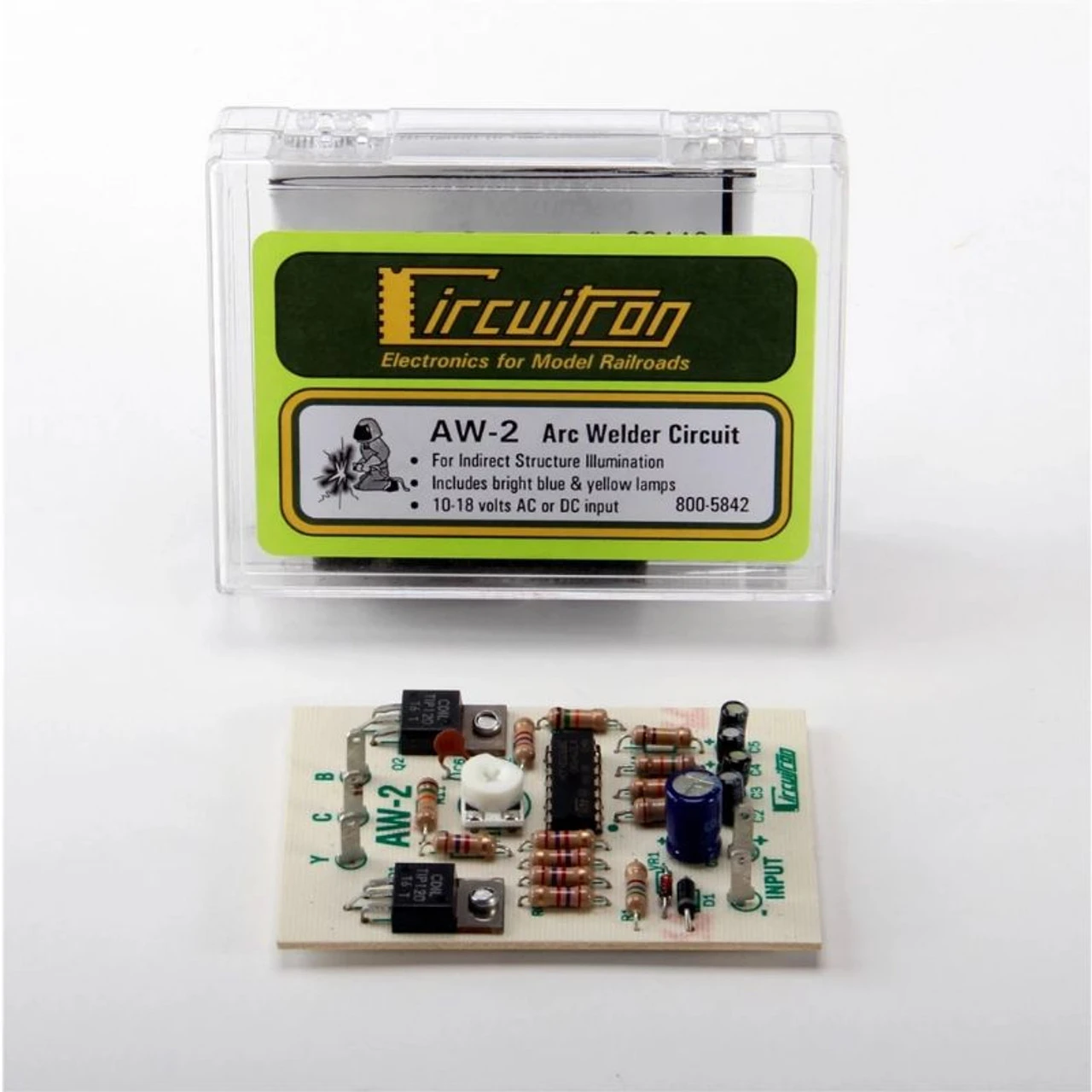 The CIRCUITRON Arc Welder Circuits utilize 2 lamps, one yellow and one blue, along with a circuit that provides a random flickering effect of the lamps. The result is a very convincing representation of an arc welder in operation.