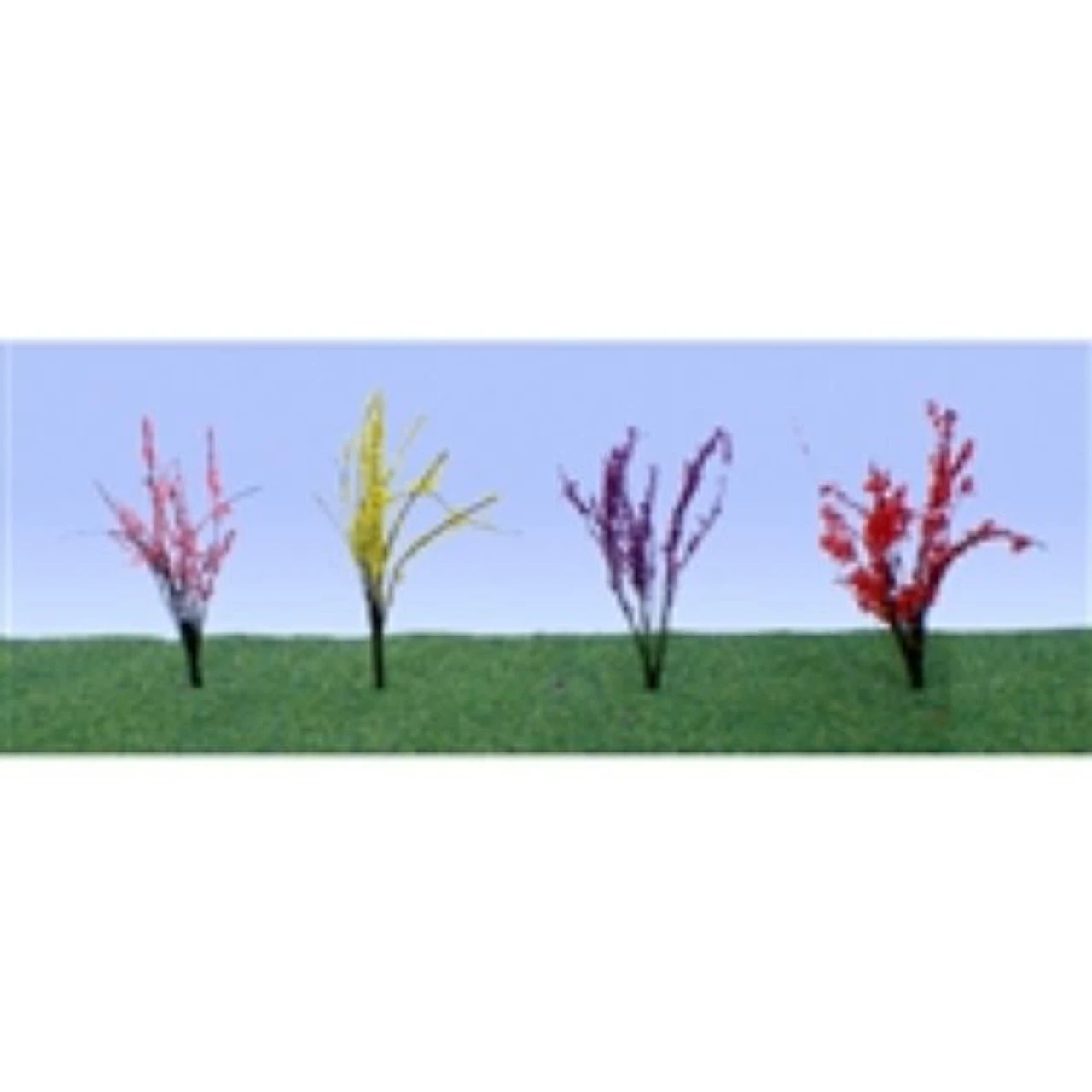 JTT 95545 – Flower Bushes: Red, Pink, Yellow, Purple 40/pk – 1/2 – 3/4in – HO Scale