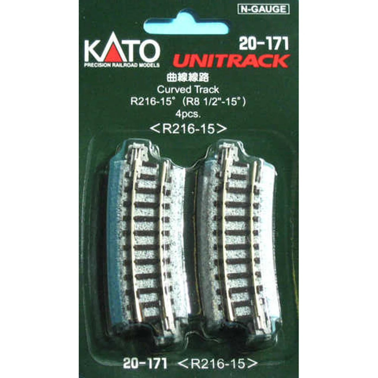 Kato 20-171 – 216mm (8 9/16″) Radius 15º Curve Track [4 Pcs] – N Scale
