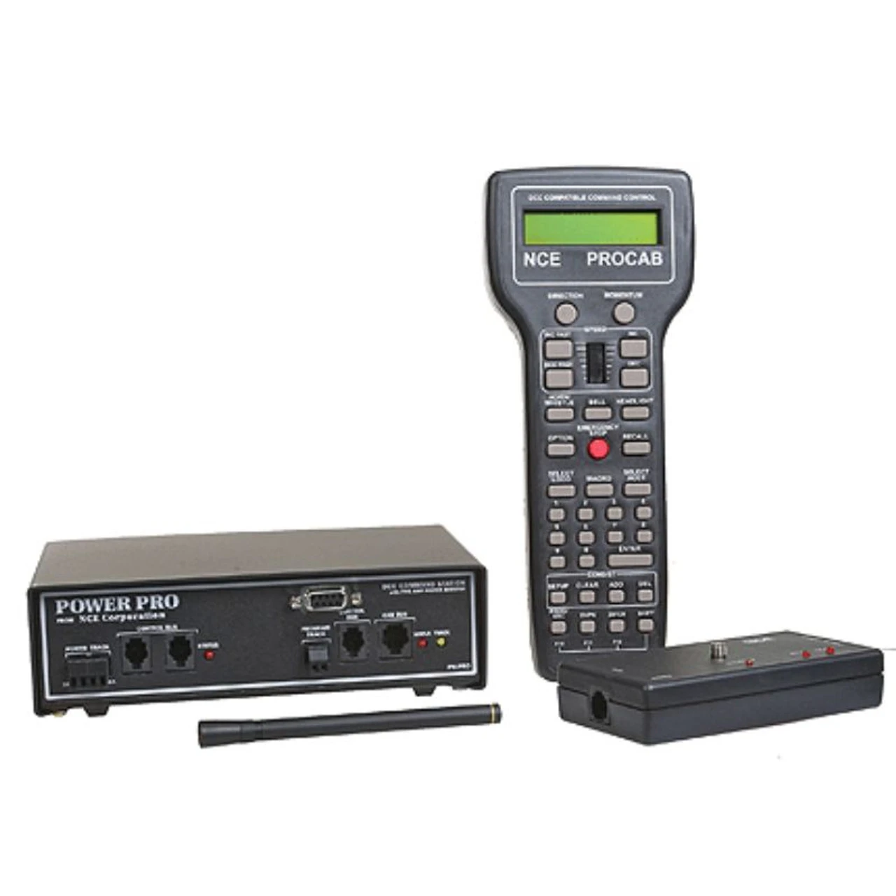 User-friendly set includes everything to get two DCC controlled trains running (except power transformer). Features wireless radio cab and walks you through operation with clearly labeled buttons and menu prompts in plain English on back lit LCD displays. Set includes ProCab throttle, Command Station with integral 5 amp power unit and system reference manual with quick start guide. NOTE: Requires 15V, 5 Amp, AC power supply, (#524-215) sold separately. NCE PH-PRO-R Wireless Power Pro