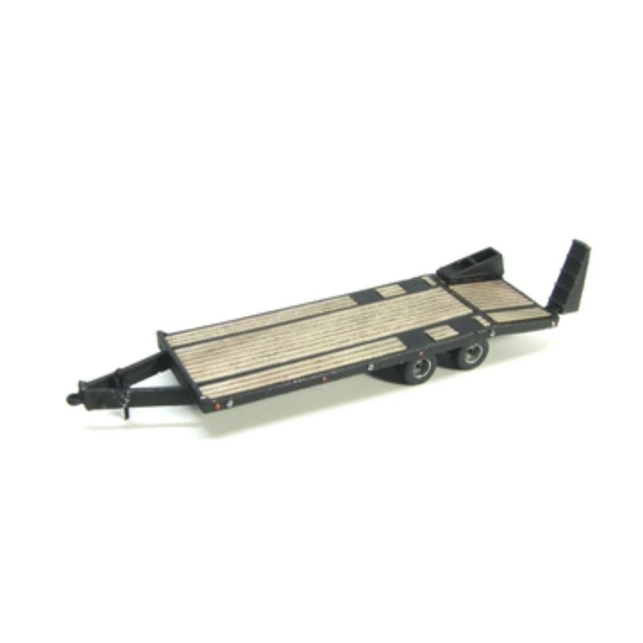20′ deck plus 5′ dovetail equipment trailer? Cast metal with real wood deck Separate ramps can be positioned optionally Individual wheels for ease of painting Showcase Miniatures N Scale Heavy Duty Equipment Trailer