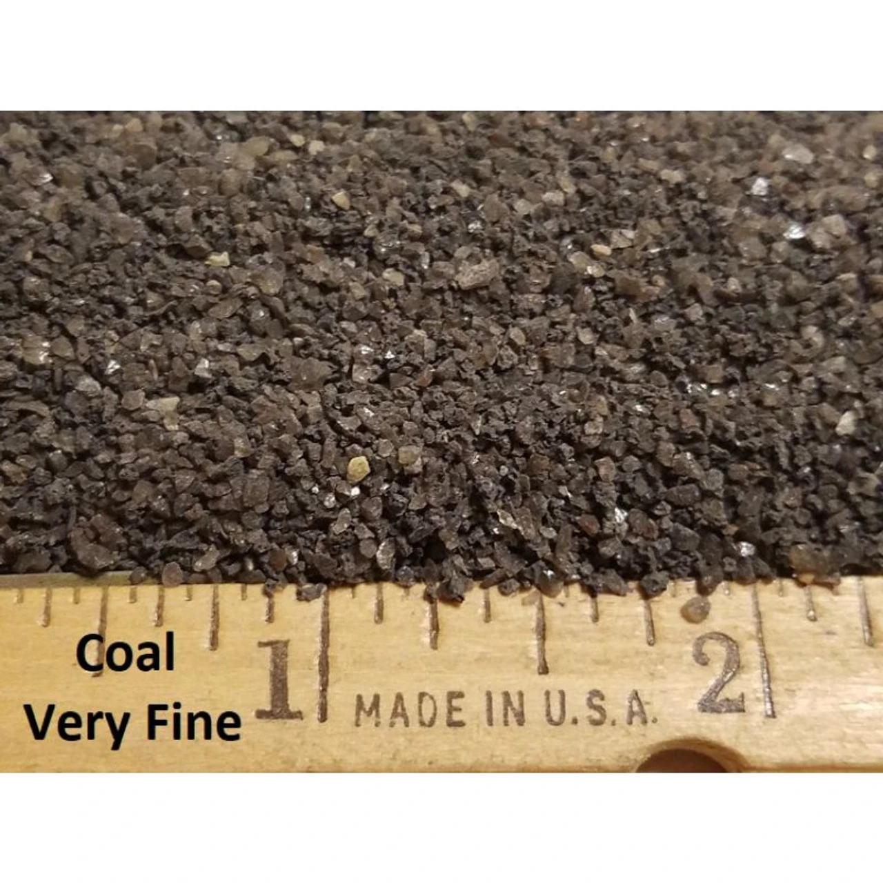 Superior Scenics has blended some of our stone materials to imitate the appearance of coal. Authentic coal is very dirty, so we have an cleaner option. This “imitation coal” similarly has the glossy shine you see in “real coal.” Choose from different grain sizes to fit the scale you are modeling. Use as a rail car load or in a mining scene.
