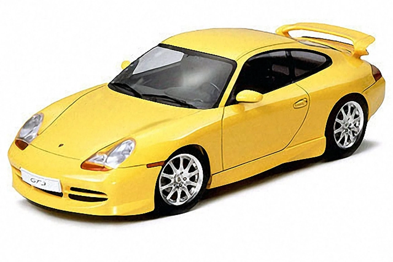 Tamiya has recreated this epoch-making sports car in 1/24 scale. The intricate engine is visible when model is viewed from below. The upper surface features a four part rear-wing construction, enhancing the sophistication of the body design. Kit also comes with the Porsche emblem, authentically recreated as a metal transfer. The inside of the detailed cockpit includes a carpet seat for the floor. Glossy metallic parts are used on the wheels, headlight reflectors, door mirrors and muffler.