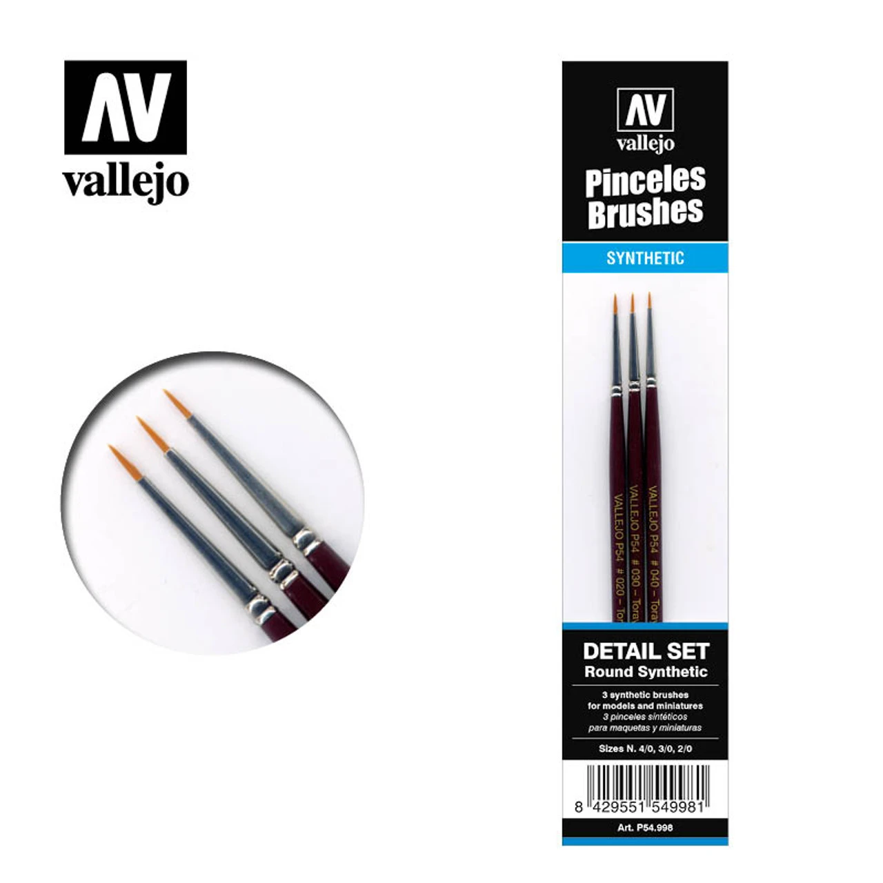 Vallejo 54998 – Toray Detail Set (Round Synthetic) 1 Each Size: #4/0, 3/0, 2/0 – Multi Scale