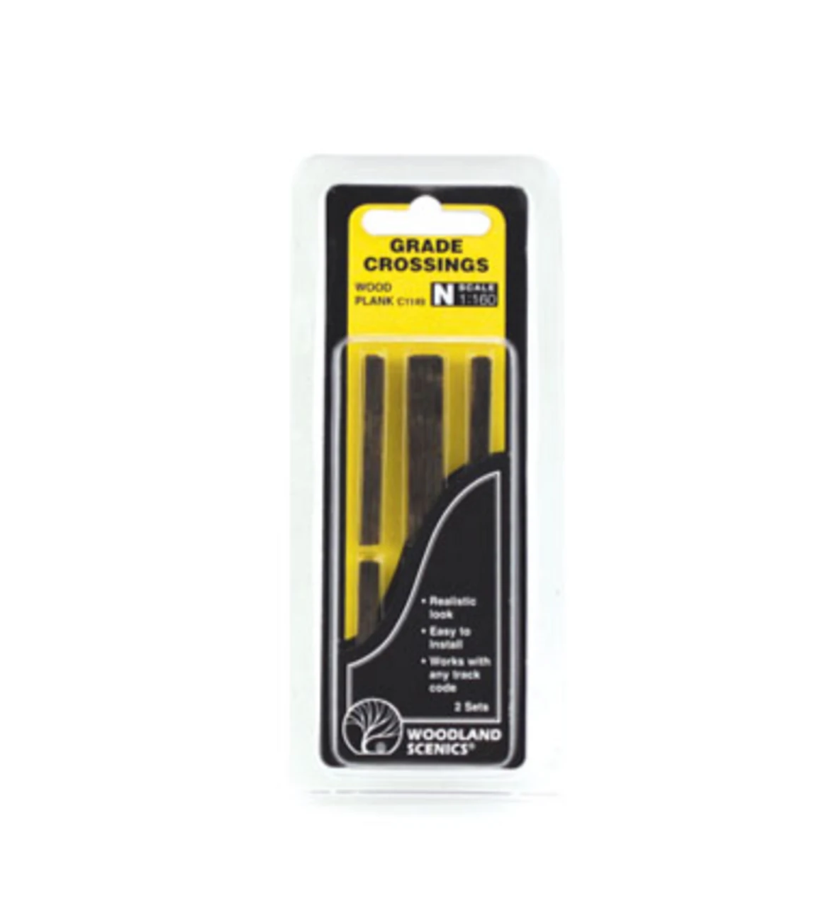 Realistic looking and ready-to-place. Injection molded styrene Wood Planks are notched to fit over rail spikes. Includes pre-cut styrene shims to correspond to proper code. Two crossings in each package.