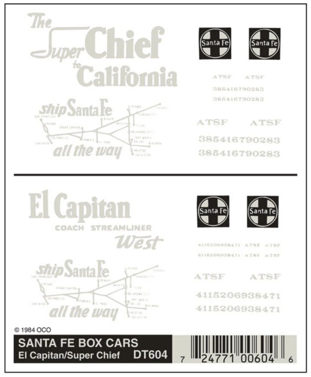 Santa Fe Box Cars-Passenger DT604 One sheet 4″ x 5″ (10.1 cm x 12.7 cm)